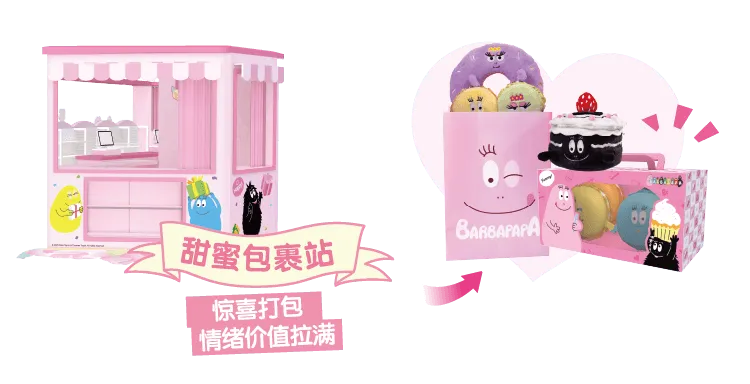 在活动现场,购买周边商品后,您可以在【甜蜜包裹站】享受特别的惊喜包装服务,让您的购物体验充满乐趣;而在【装“萌萌”】自助区,您可以挑战自己的装载技巧,将可爱的橡皮擦带回家,能装多少就看您的能力了;此外,在巴巴爸爸的【主题限定区】,您还可以跟随巴巴爸爸一起体验“做蛋糕”的乐趣。